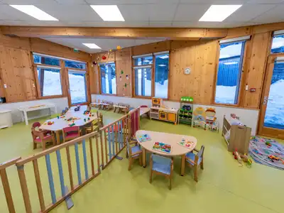 Idéalement située au centre de la station, la garderie se trouve à quelques minutes du téléski desservant le plateau (point de rendez-vous des départs de cours de ski ESF et des Cours Piou Piou). Un emplacement idéal pour faciliter la logistique des familles au quotidien.